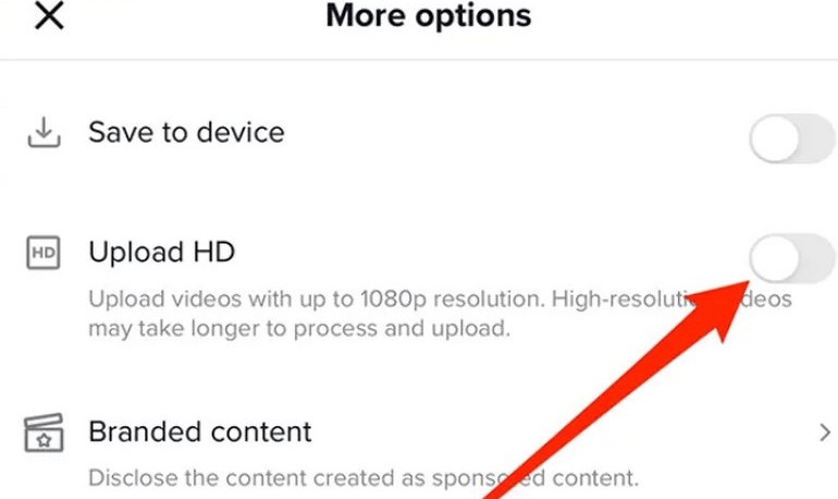 - Включите опцию (Загрузка HD). Это позволит приложению публиковать видео с максимальной четкостью и яркостью.