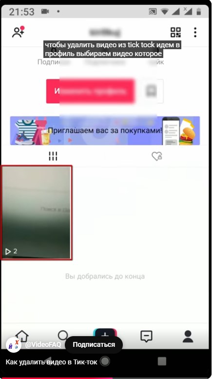 - В правом нижнем углу нажмаете кнопку (Я), чтобы открыть меню профиля со всеми вашими загруженными видео;