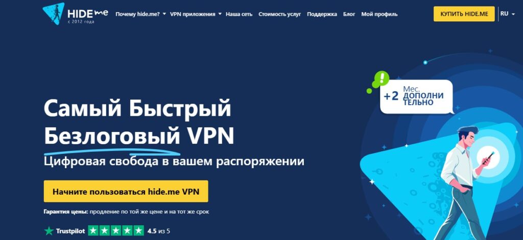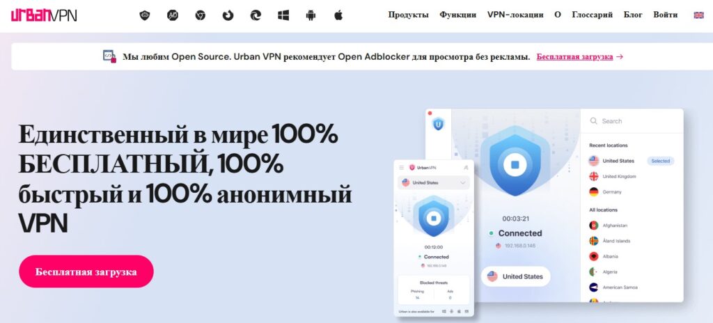 Один из самых надёжных сервисов. Бесплатная версия без лимита трафика, высокая скорость и строгая политика конфиденциальности. Обеспечивает стабильное подключение и не собирает данные пользователей.