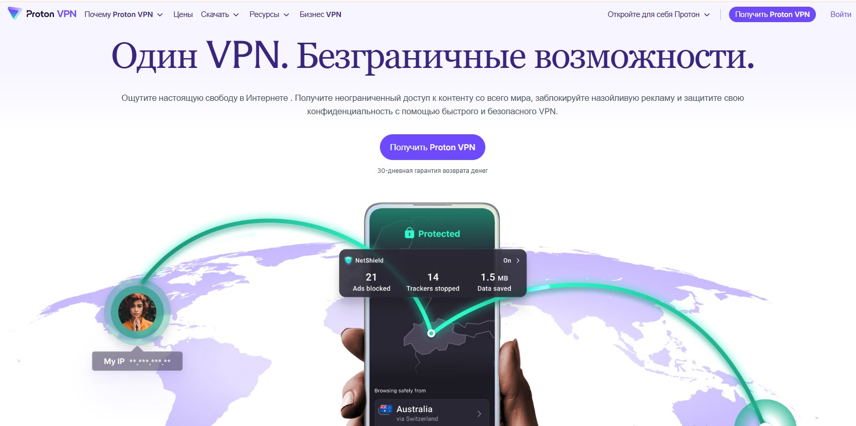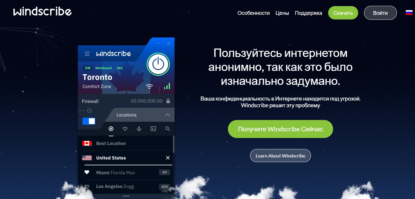 Один из самых надёжных сервисов. Бесплатная версия без лимита трафика, высокая скорость и строгая политика конфиденциальности. Обеспечивает стабильное подключение и не собирает данные пользователей.