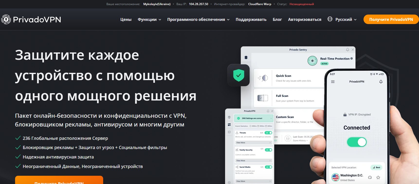 VPN с упором на приватность и простую настройку. Бесплатная версия даёт до 10 ГБ в месяц. Отличается высокой степенью защиты, отсутствием логирования и удобством использования как на смартфонах, так и на компьютерах.